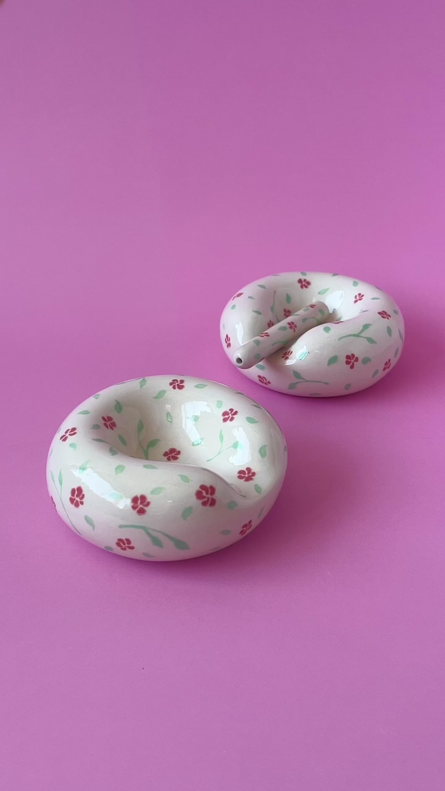 Slipcast high fire ceramic and hand painted with red roses. Fired in a little kiln in a sunny studio in Halifax Nova Scotia.